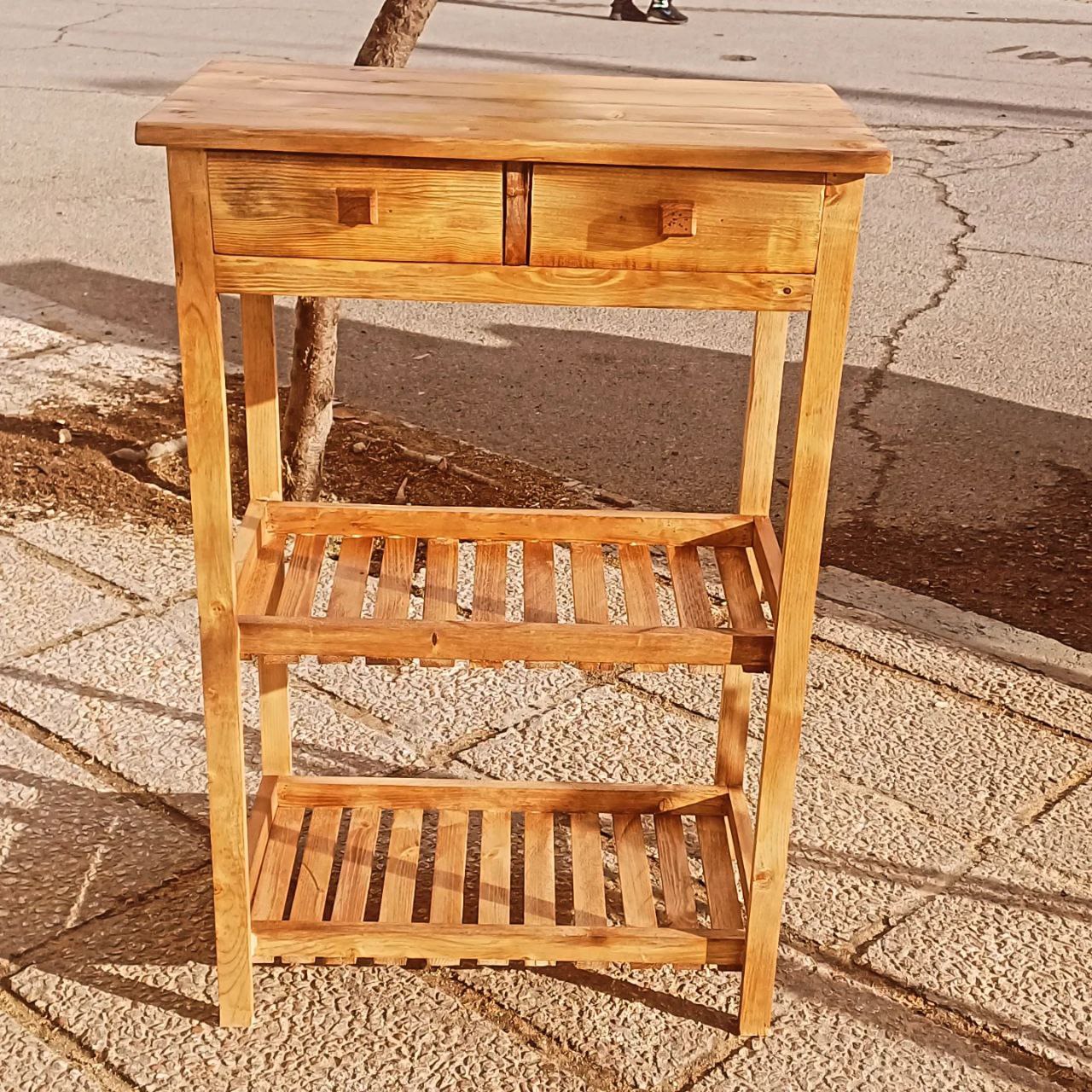امکانات: ۲ کشو جادار + ۲ طبقه باز برای چیدمان لوازم