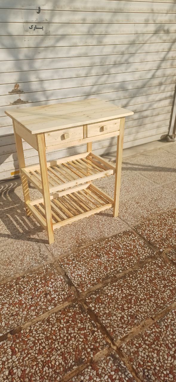 امکانات: ۲ کشو جادار + ۲ طبقه باز برای چیدمان لوازم